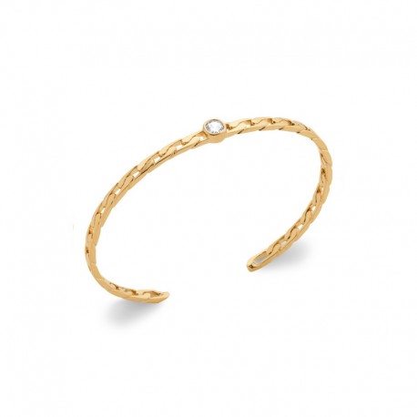 Rigid bangle in gold-plated link with zircon - Fine curb link bracelet