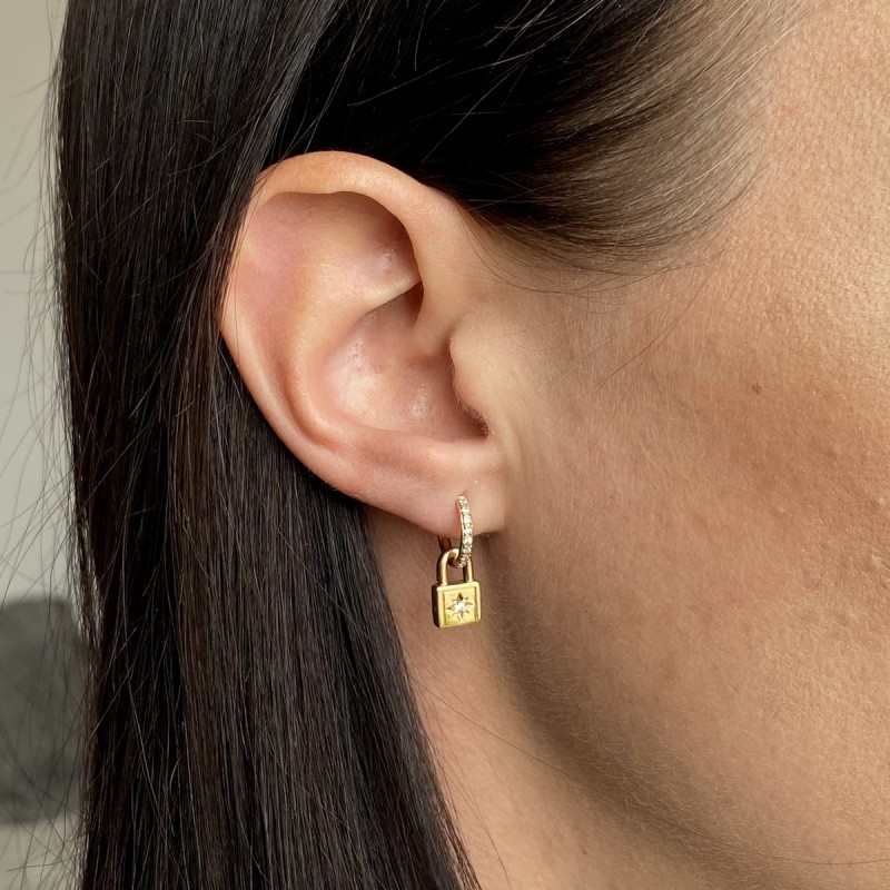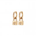 Padlock charm earrings with zircon on star shape - AMOUR - 18K gold plated hoops