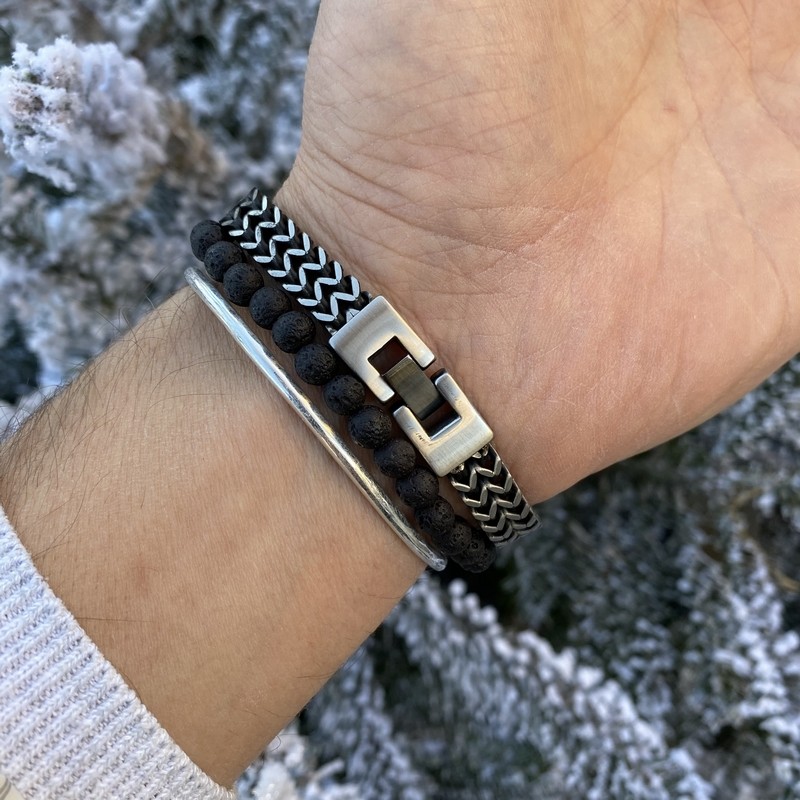 Men's thick chain bracelet in two-tone silver and black stainless steel - Vintage Steel Bracelet
