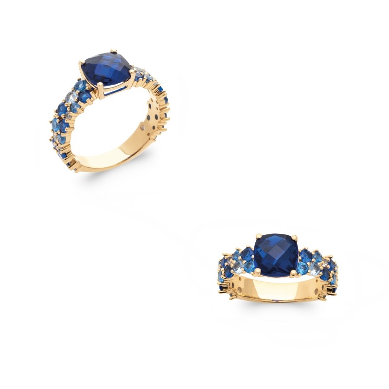 Bague pierre bleue sertie, anneau empierré oxyde de zirconium en camaïeu bleu - DUCHESSE - Plaqué or 18K - Kate Middleton