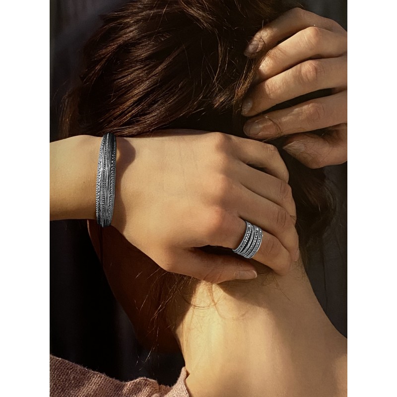 Cette large bague est composée de 10 anneaux différemment travaillés reliés par un anneau plat. Un magnifique bijou au style ethnique a acquérir sans plus tarder.