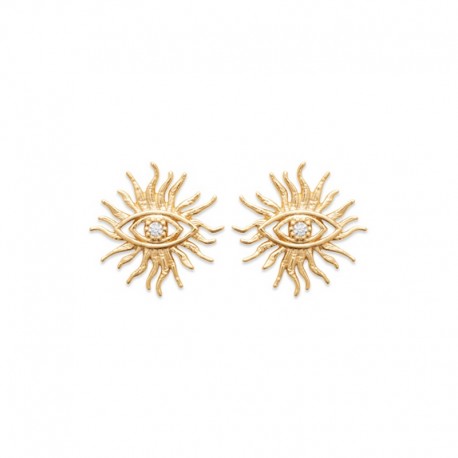 Ces boucles d'oreilles sont symbole d’énergie, de résolution, de volonté par le soleil et de protection par l'œil. Elles feront parties de vos portes bonheur. Elles se démarquent avec leur design original. On retrouve au centre de l'œil un diamant synthétique de type zirconium. Egalement disponible la bague et le collier assorties (voir sur la boutique)