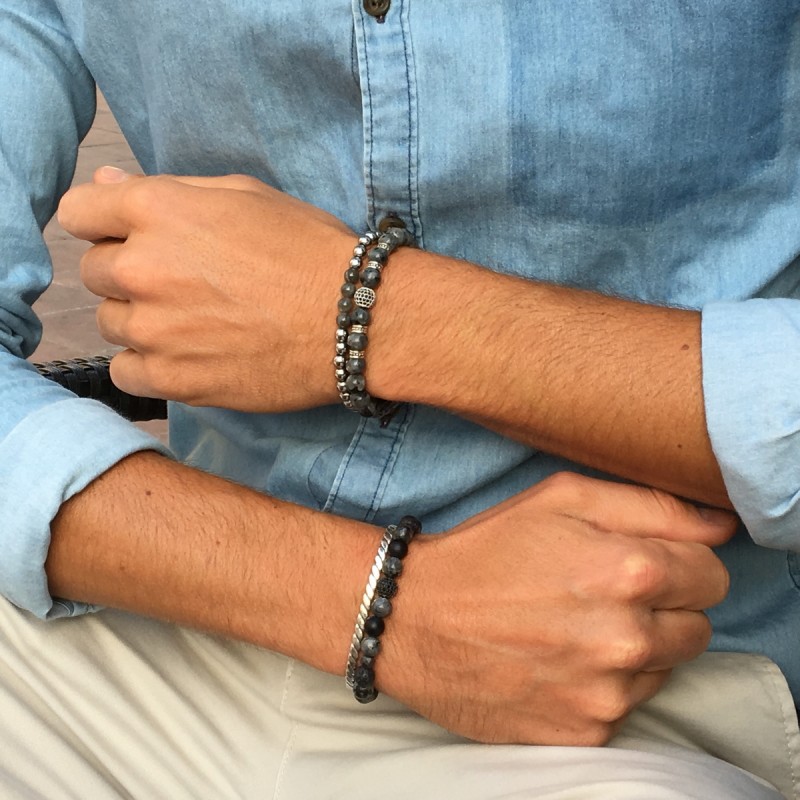 Bracelet 6mm - Perle Hématite argenté et Labradorite (Homme / Femme)