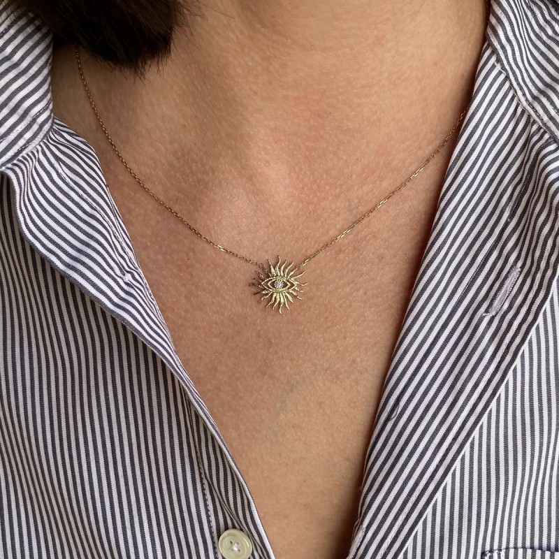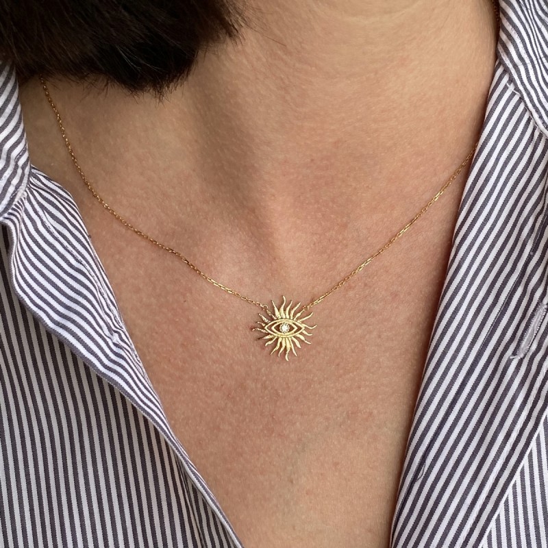 Collier plaqué or, porte bonheur mauvais œil et rayon de soleil - NAZAR -